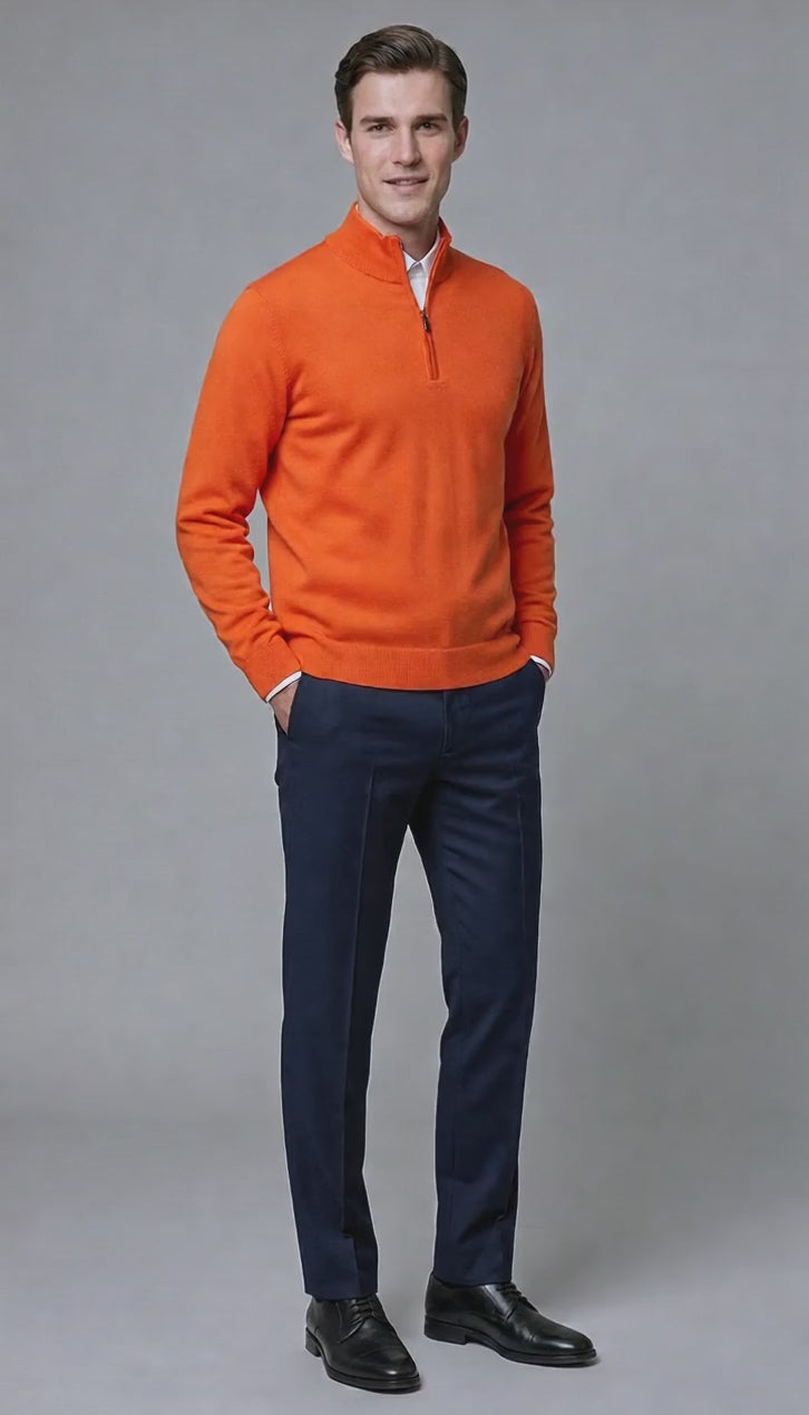 Maglia Uomo Mezza Zip Misto Cachemire Unito